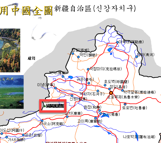 위치 : 신강자치구(新疆自治區) 십만대산(十萬大山) 천산(天山)